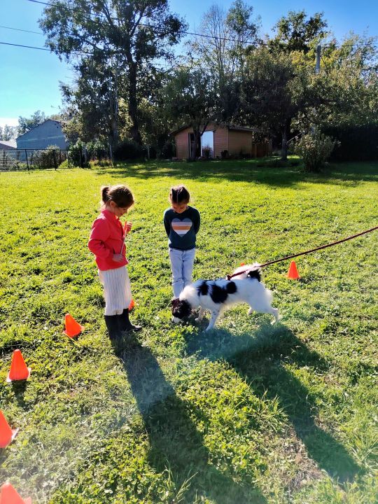 Aujourd'hui, nous avons travaillé avec les chiens : Helpy et Scampy nous ont accompagnés pendant la séance.