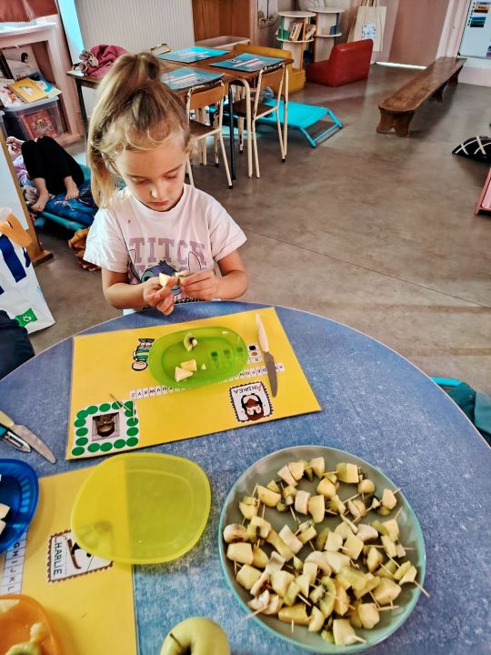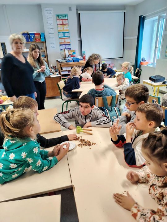 Ce jeudi, les jeunes du château d'Aix sont venus à l'école pour des ateliers sur les différentes catégories de fruits et un temps de dégustation.