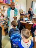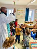 Ce vendredi, nous avons eu la visite du Père Philemon pour la bénédiction des cartables.